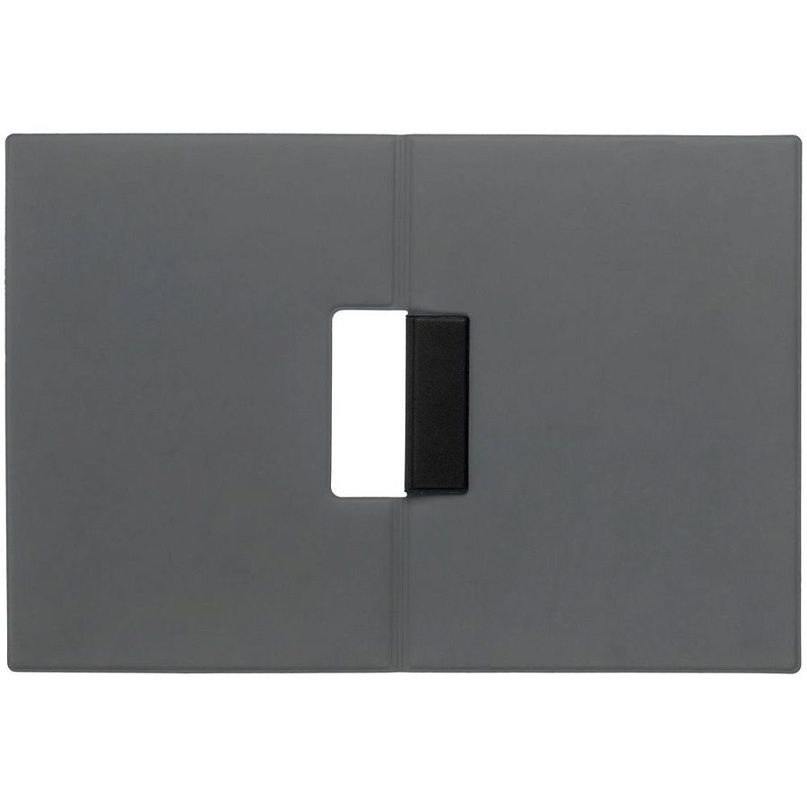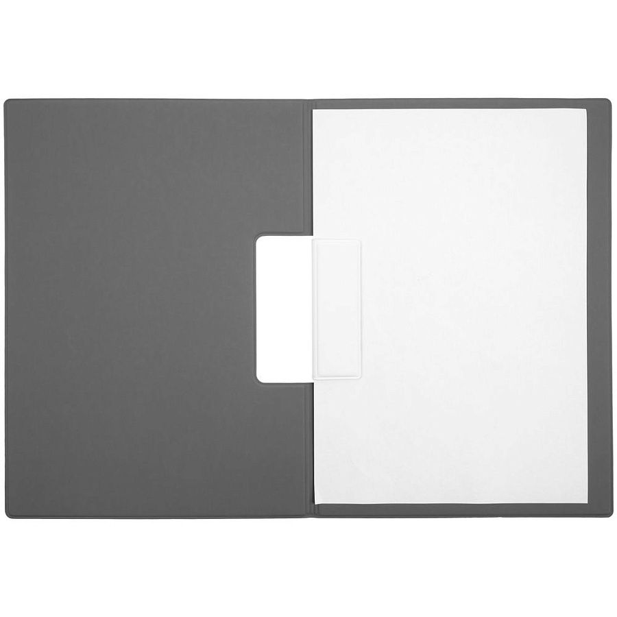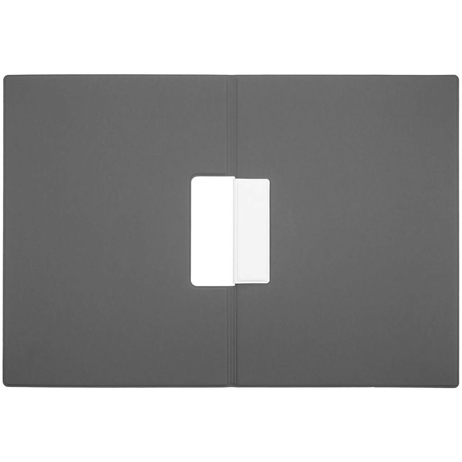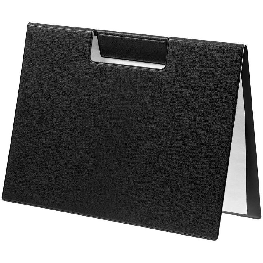 Папку можно использовать в стандартном вертикальном формате или перегнуть обложку и поставить в качестве таблички горизонтально. Магнитный клип удерживает до 10 листов.