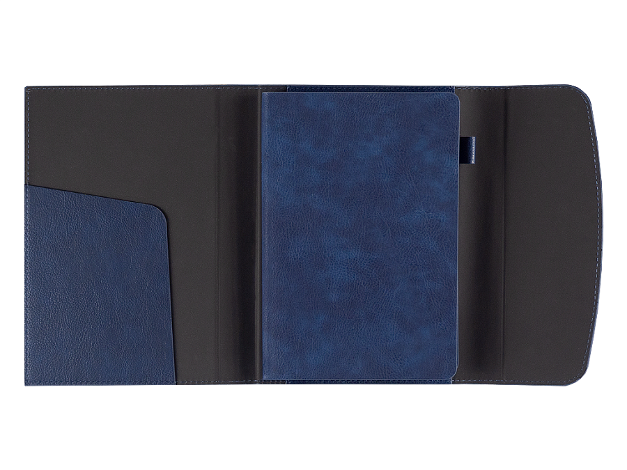 Ежедневник-портфолио имеет карман под визитки или бумаги, петельку для ручки.