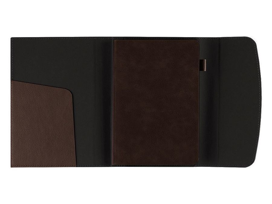 Ежедневник-портфолио имеет карман под визитки или бумаги, петельку для ручки.