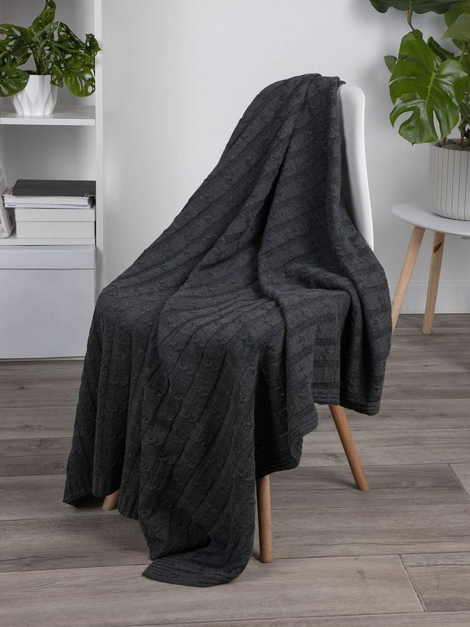 Вязаный плед фактурной вязки из меланжевой пряжи.
