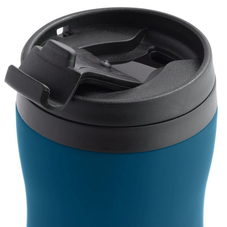 Двухслойная конструкция из нержавеющей стали снаружи и пищевого пластика внутри. Герметичная завинчивающаяся крышка с откидным клапаном для питья. Покрытие софт-тач. В отверстие в крышке можно вставить шнурок для удобного ношения стакана на руке. Шнурок в комплект не входит.