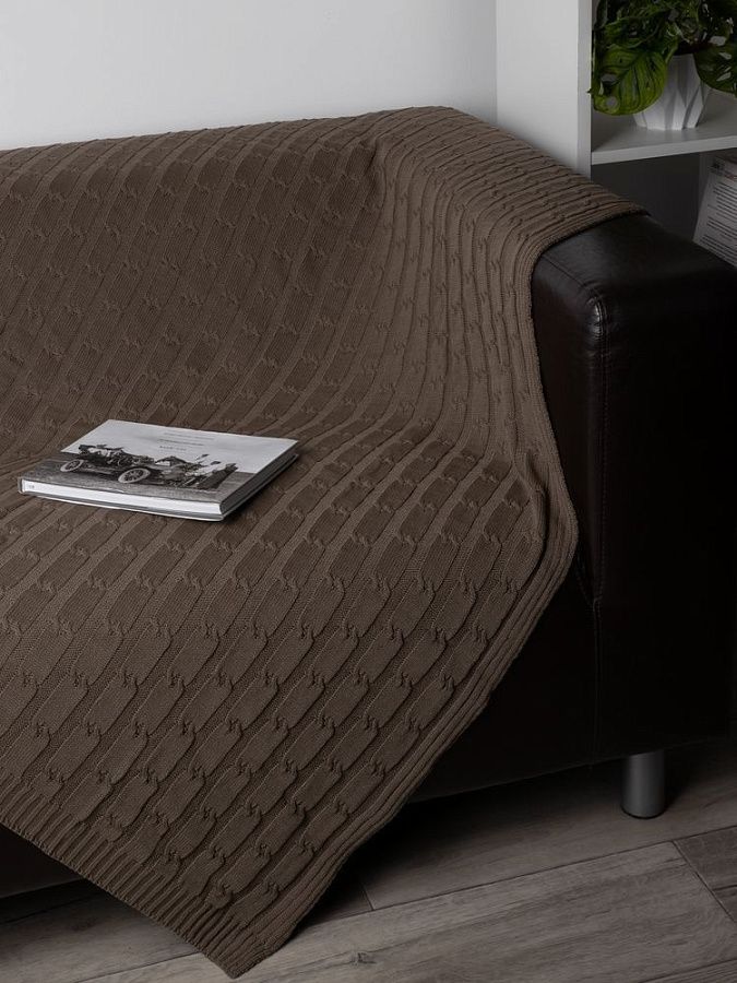 Плед мягкого натурального оттенка с ненавязчивым классическим узором «косы» добавит спокойного шика в интерьер, гармонично впишется в композицию современной гостиной или спальни.