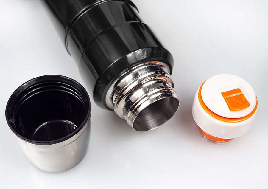 Термос из нержавеющей стали для горячих и холодных напитков объёмом 800 мл.  Благодаря специальному дизайну - отлично лежит в руке. Крышку термоса можно использовать как стакан для чая или кофе. Пробка имеет стоппер и не прольется в закрытом состоянии, если вы нечаянно уронили термос. Легко выкручивается и моется. Глянцевое покрытие термоса легко поддается персонализации (Лазерной гравировки). Сохраняет тепло до 48 часов, холод до 72 часов.   Такое сохранение тепла обеспечивается использованием долговечной пищевой высококачественной стали марки SUS 304, а также вакуумной медной изоляцией между двойными стенками. Отличный подарок сотрудникам или коллегам.