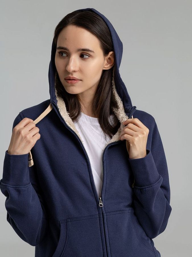 - Широкий съемный шнурок контрастного цвета на капюшоне