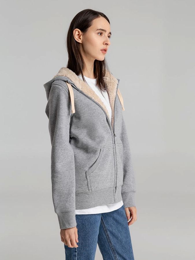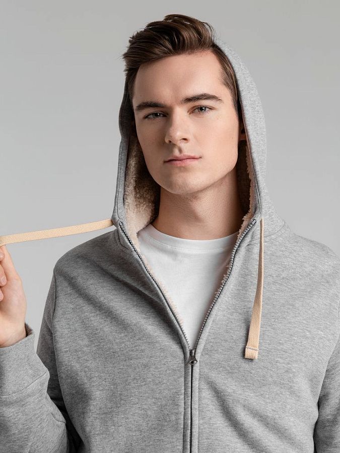 - Широкий съемный шнурок контрастного цвета на капюшоне