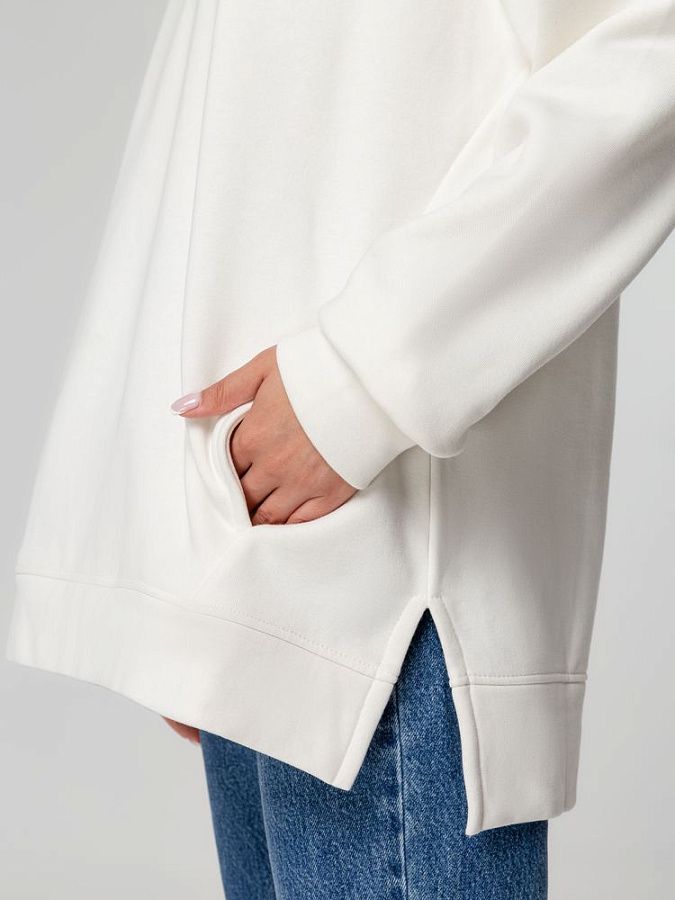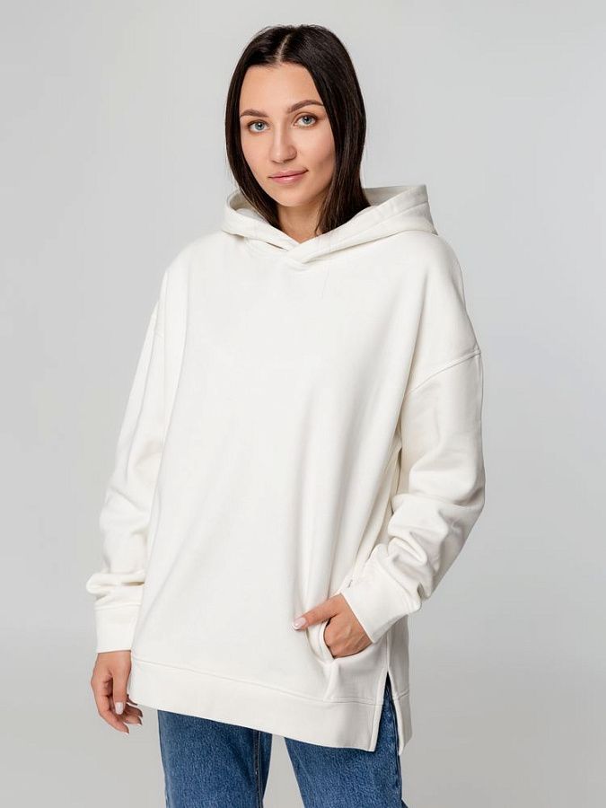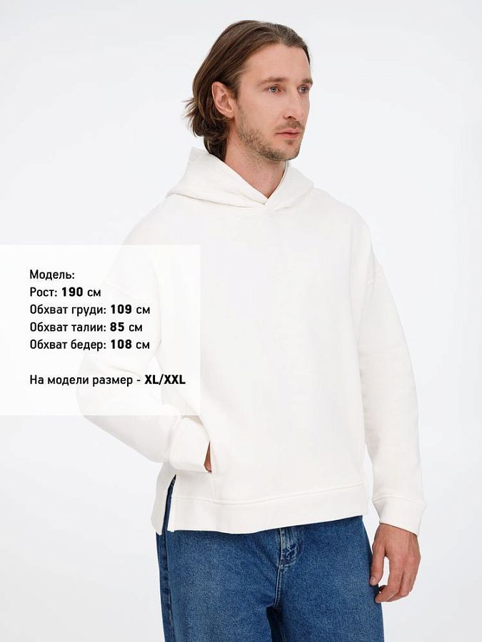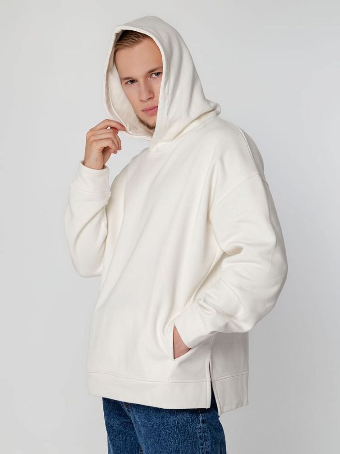 Худи унисекс оверсайз со спущенным плечом и внутренним карманом-кенгуру.