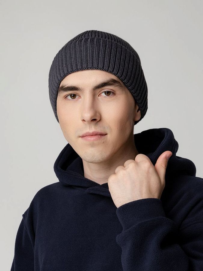Основное полотно связано резинкой 1x1, отворот — резинкой 2x2.