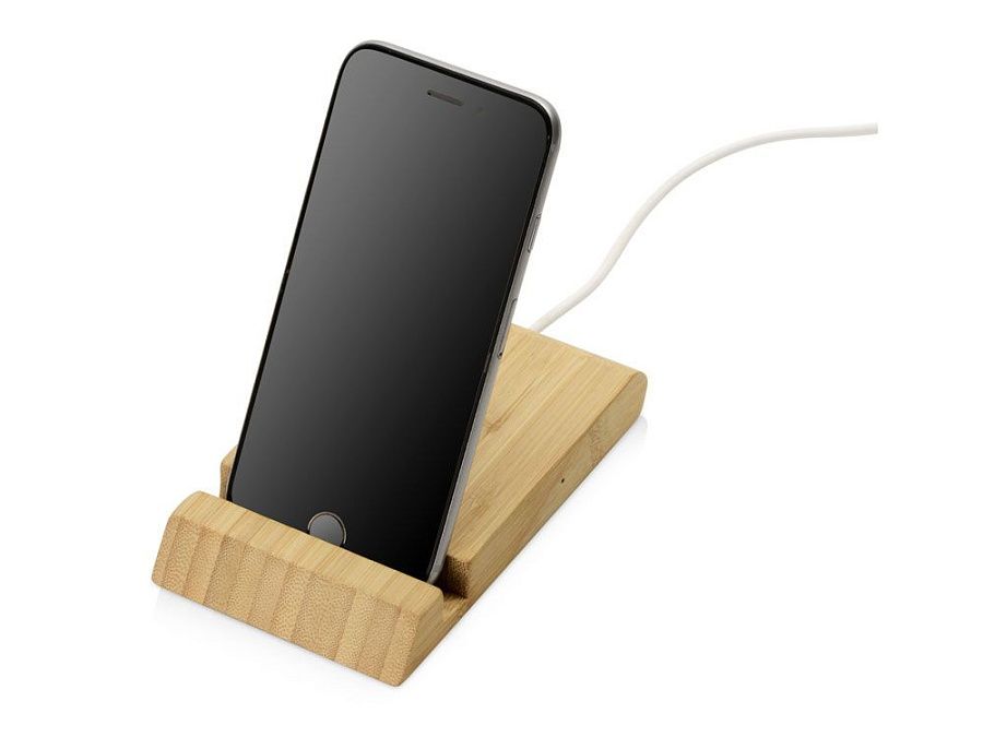 Беспроводное зарядное устройство «Jetty» в корпусе из натурального бамбука поддерживает функцию быстрой зарядки Qi-совместимых моделей смартфонов. Также устройство можно использовать как подставку для смартфона.