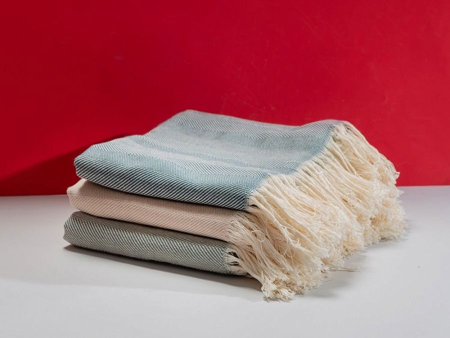 Плотный плед из натурального хлопка с бахромой по бокам. Можно использовать как одеяло или как покрывало для украшения интерьера.