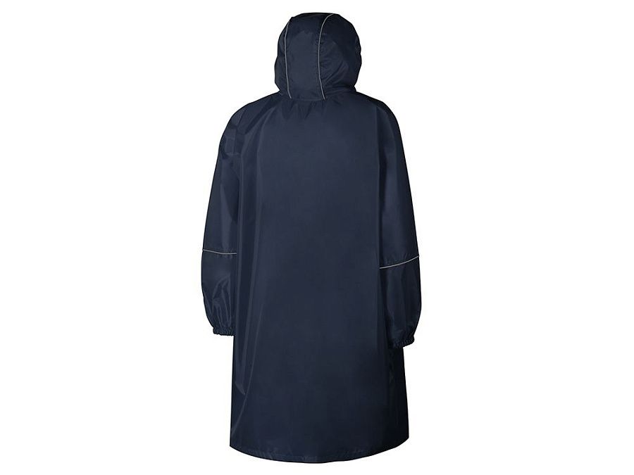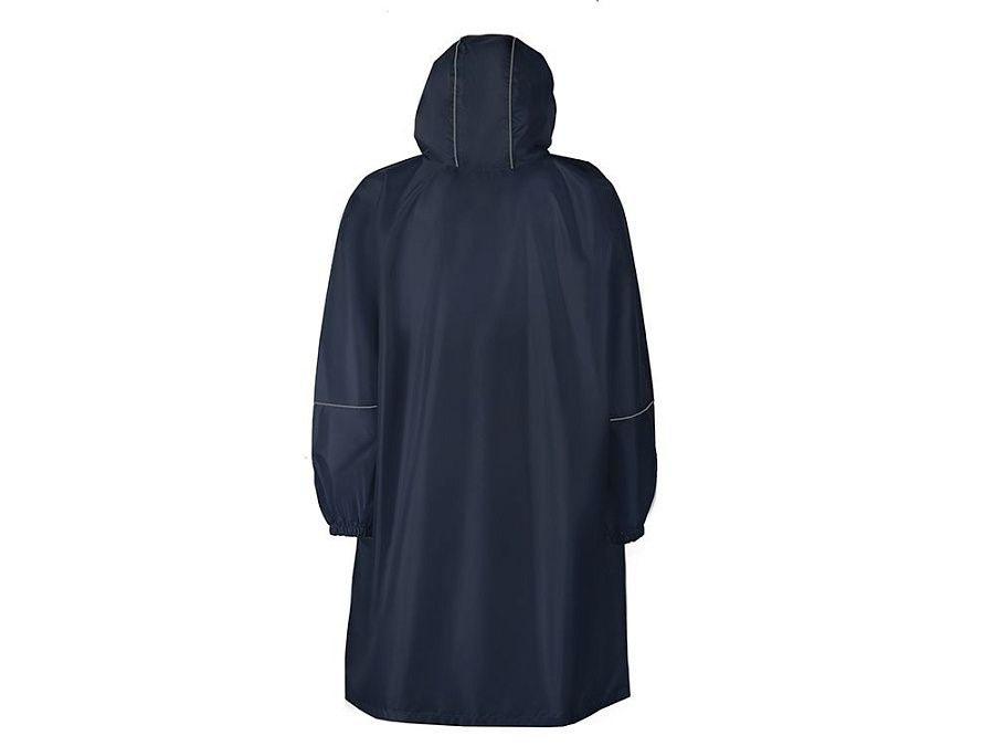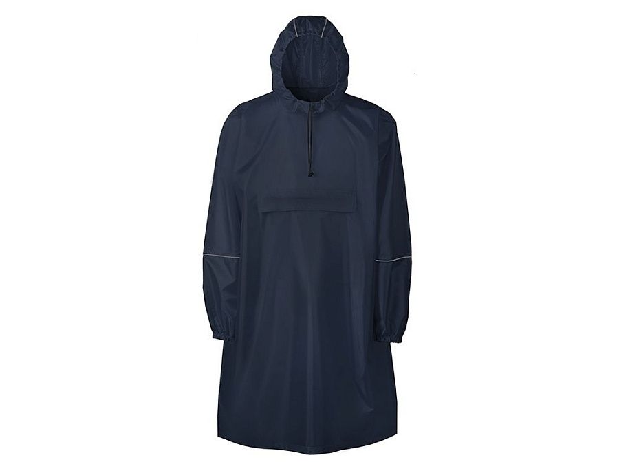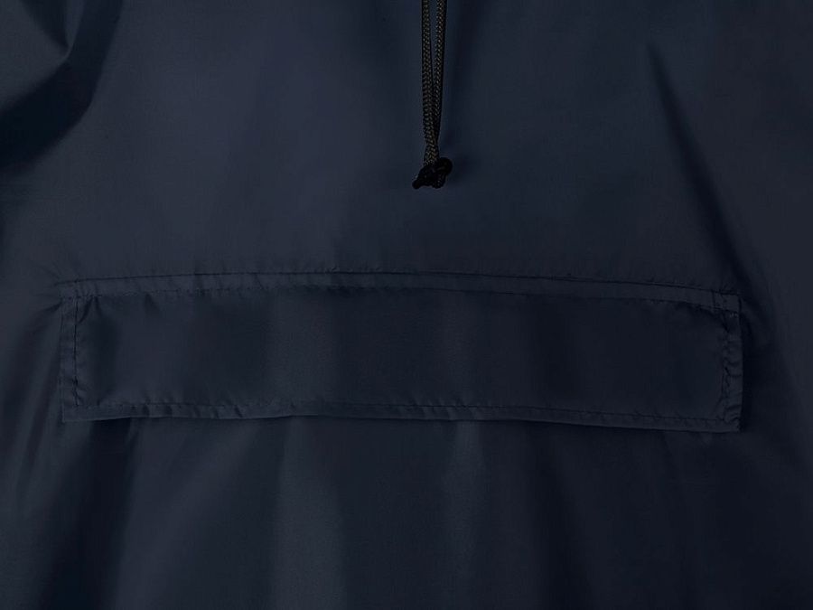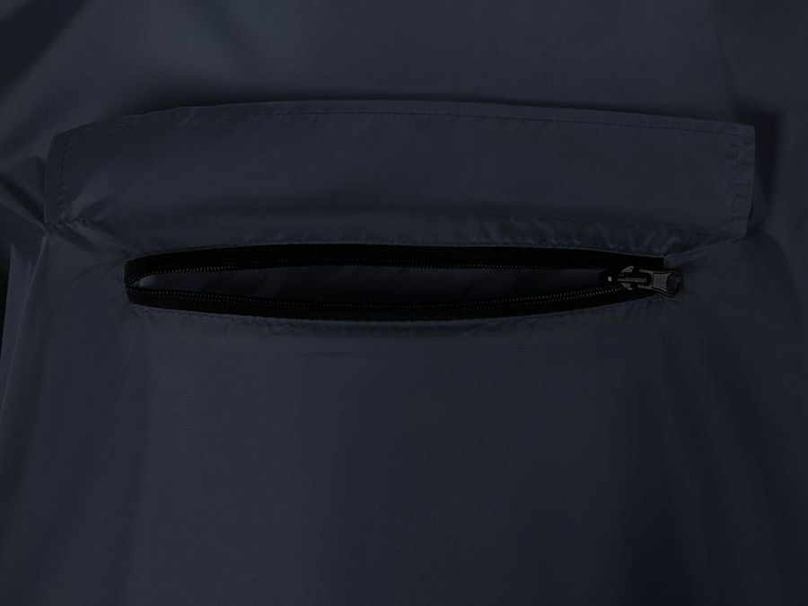 Дождевик - пончо прямого силуэта. Нагрудный карман плаща закрывается на молнию, которая дополнительно защищена клапаном, а еще в него можно полностью убрать дождевик. На дне кармана — ручка-петелька, которая в сложенном виде может использоваться для подвешивания.