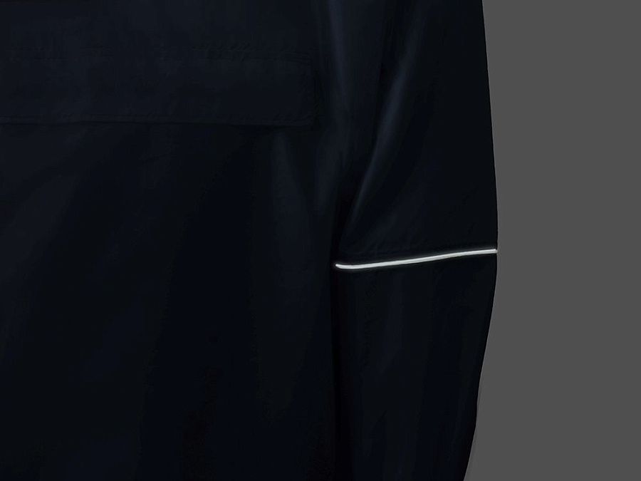 Швы капюшона и рукавов отделаны светоотражающим кантом, который делает человека заметным даже в темное время суток. Для комфортной посадки — затягивающийся на шнурок капюшон с фиксатором и манжеты на резинке.