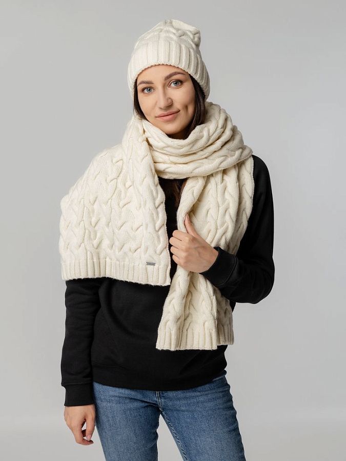Однослойный шарф фактурной вязки с объемными косами.