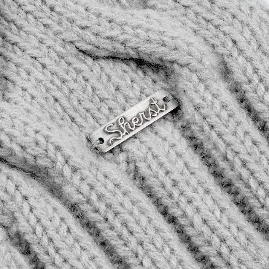 Металлический шильд с названием бренда расположен по нижнему краю изделия, что оставляет достаточно места для пришива лейбла или шильда с логотипом заказчика.
