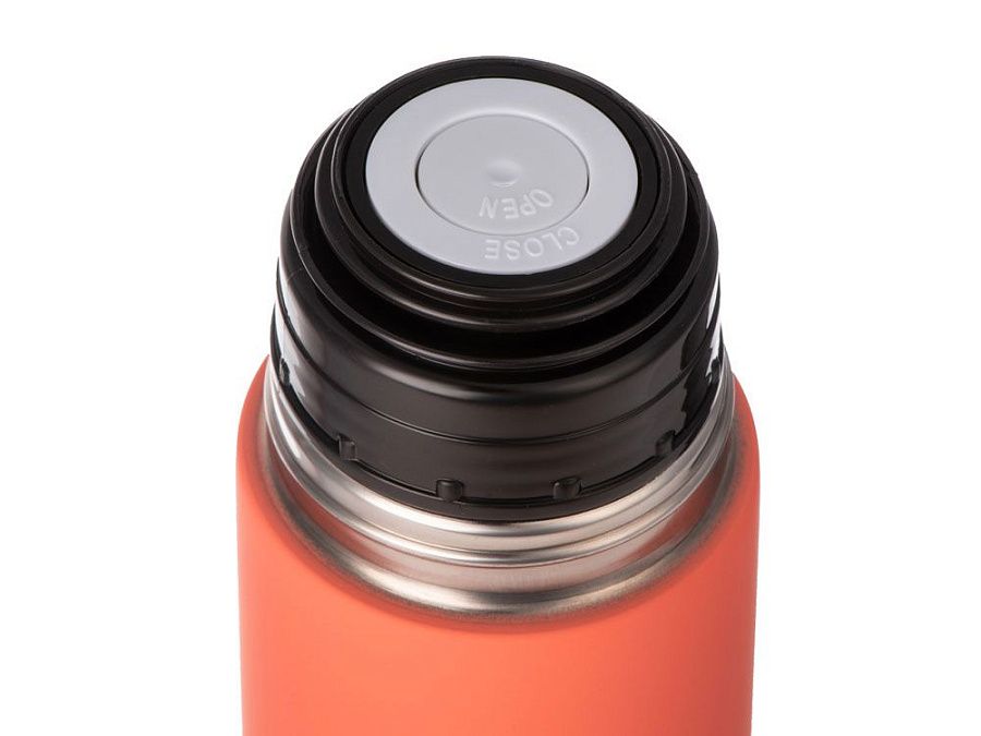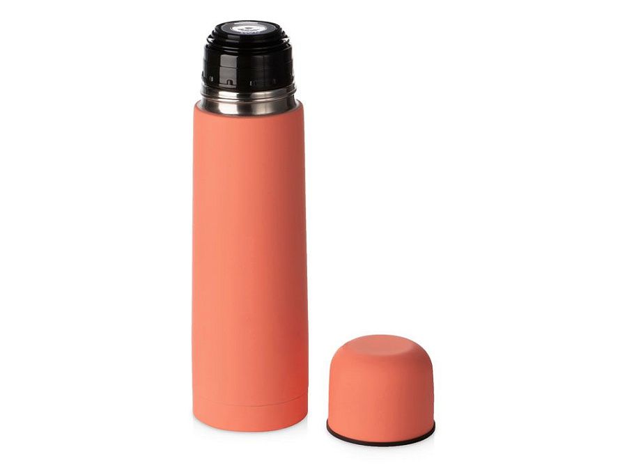 Универсальный термос с мягким прорезиненным покрытием софт-тач. Удобно и приятно держать в руке. Благодаря вакуумной изоляции и двойным стенкам сохраняет напитки горячими 24 часа. Герметичный клапан открывается и закрывается по легкому нажатию. Термос поставляется в дорожном чехле из искусственной кожи.