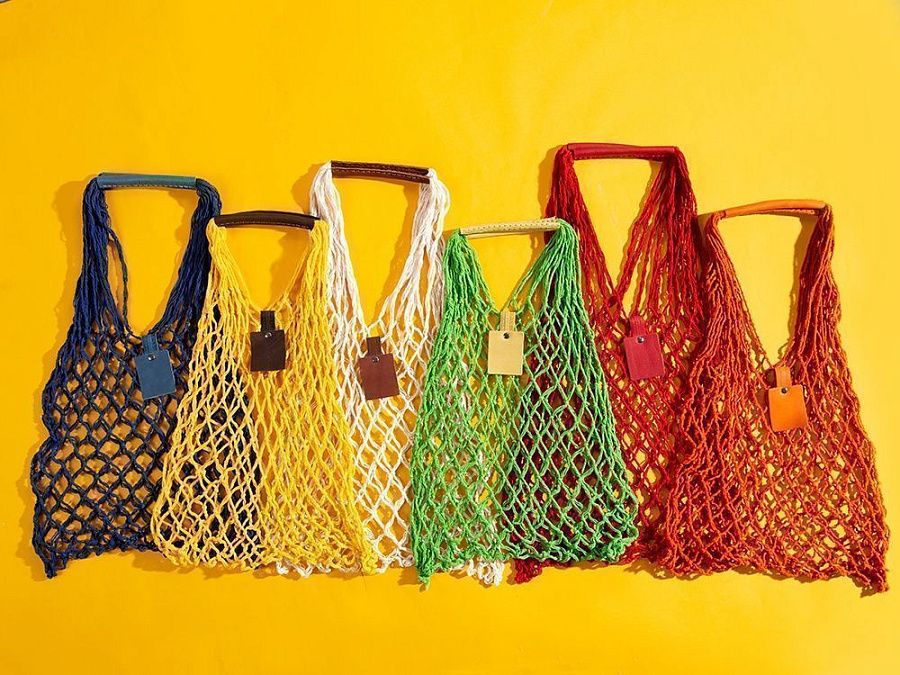 Авоськи окрашиваются профессиональными красками для пряжи и не линяют.