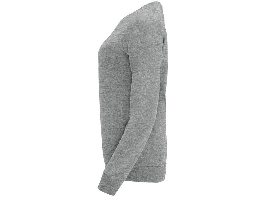 Свитшот с рукавом реглан из хлопкового футера без начеса. Манжеты по рукавами низу изделия из риба 2х1. Впереди треугольная деталь с декоративной отстрочкой .Круглый вырез горловины дополнительно усилен тесьмой.