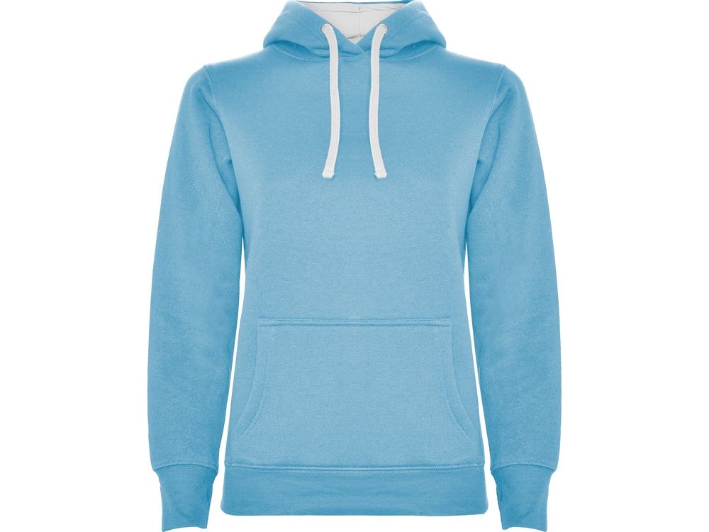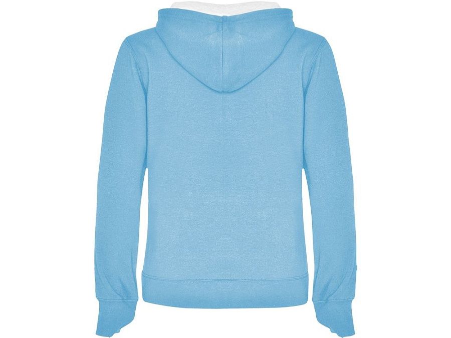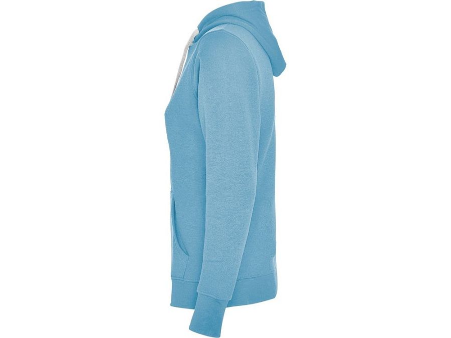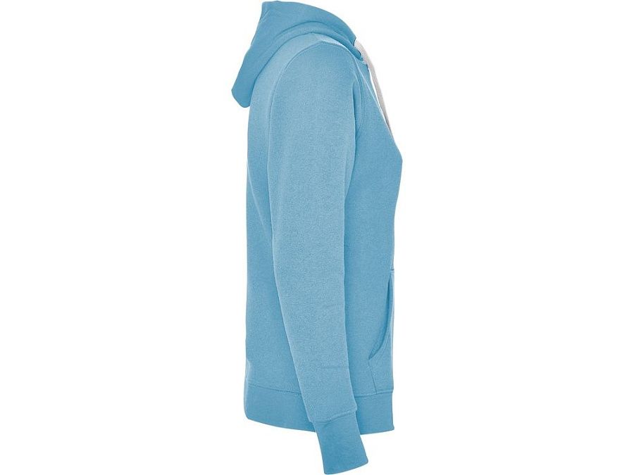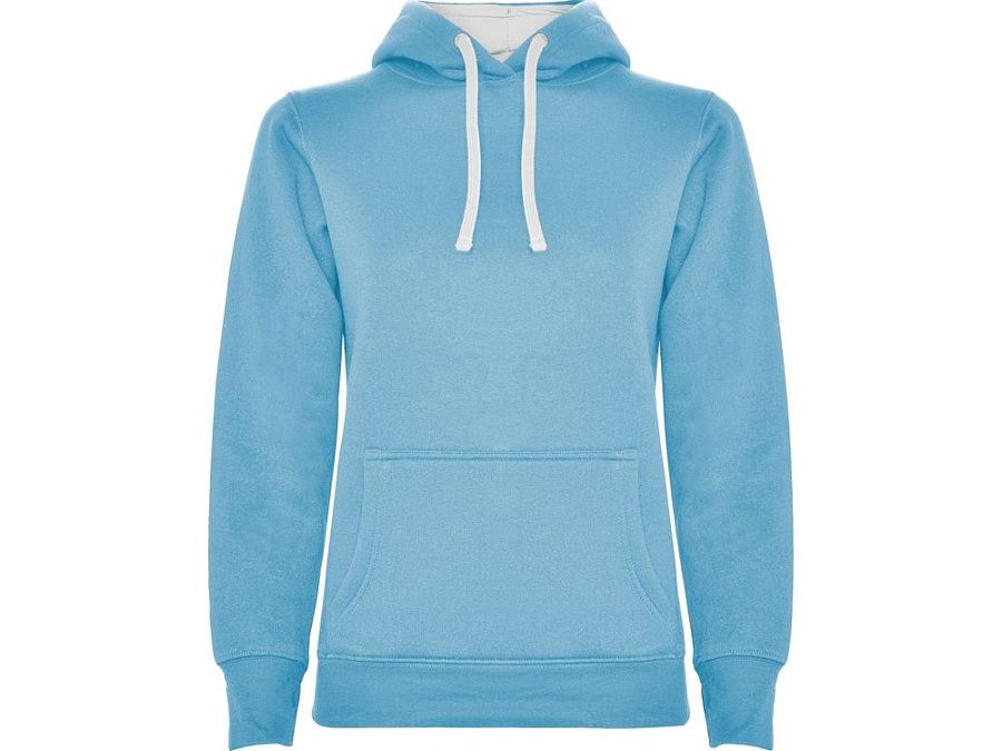 Худи с капюшоном и шнурками. Отделка горловины спинки внутри тесьмой, Риб 1х1 по низу изделия и манжетам. Карман кенгуру. На манжетах вырез под большой палец