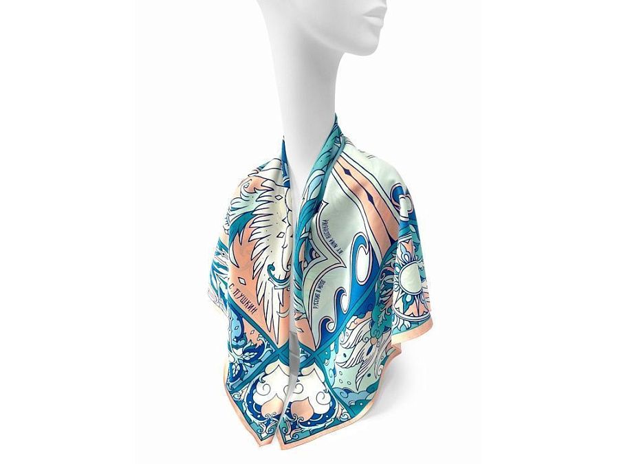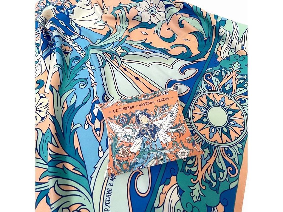 Дизайнерский платок “Царевна Лебедь” от Нины Ручкиной стал воплощением сказочного персонажа, прославленного великим и талантливым романтиком и поэтом — А. С. Пушкиным. Именно он впервые подарил нам образцы художественной русской эстетики, исходящей из самой глубины русской души.