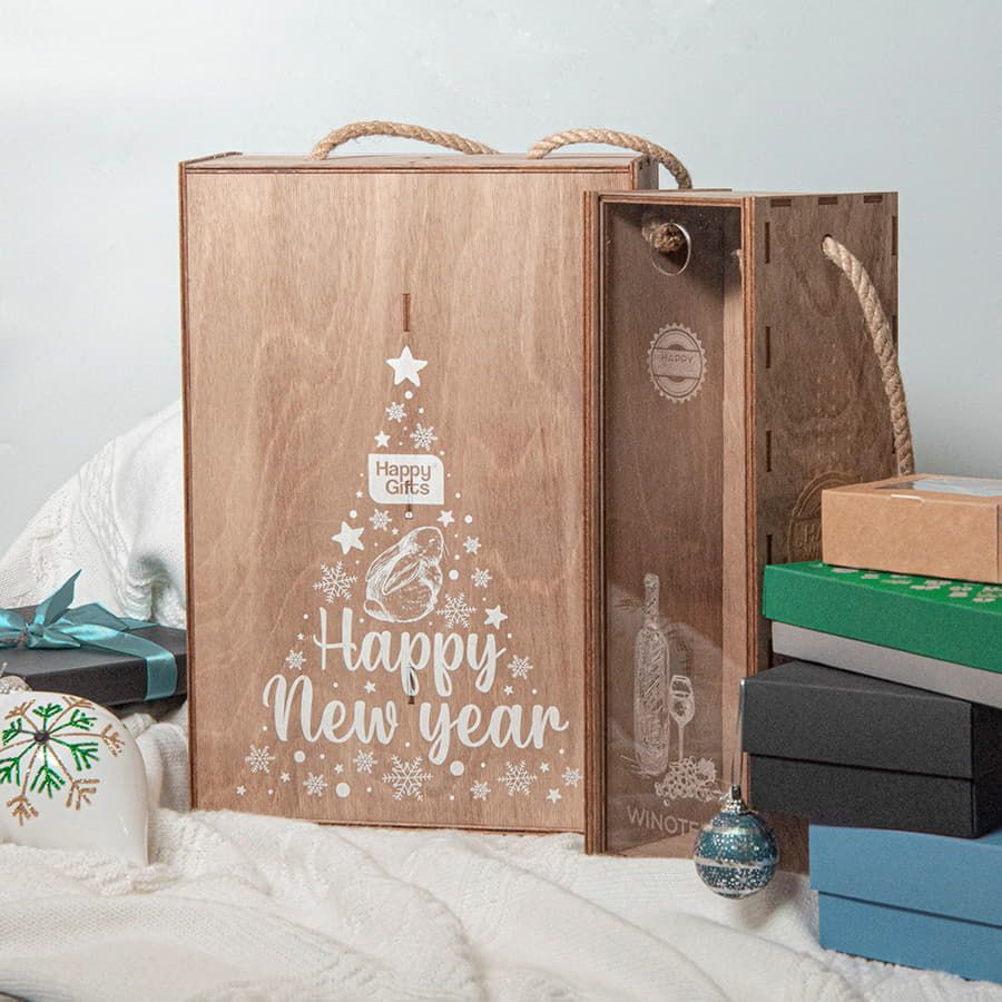 HAPPY GIFTS представляет вашему вниманию ящик подарочный WINOTEKA - пенал с джутовой ручкой изготовлен из дерева толщиной 4 мм, покрыт морилкой цвета дуб. Передняя крышка - акрил.