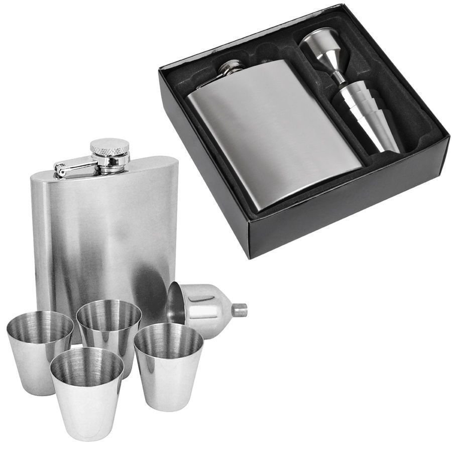 Размеры фляжки: 13,6 см х 9,4 см х 2,2 см. Объем 235 мл.