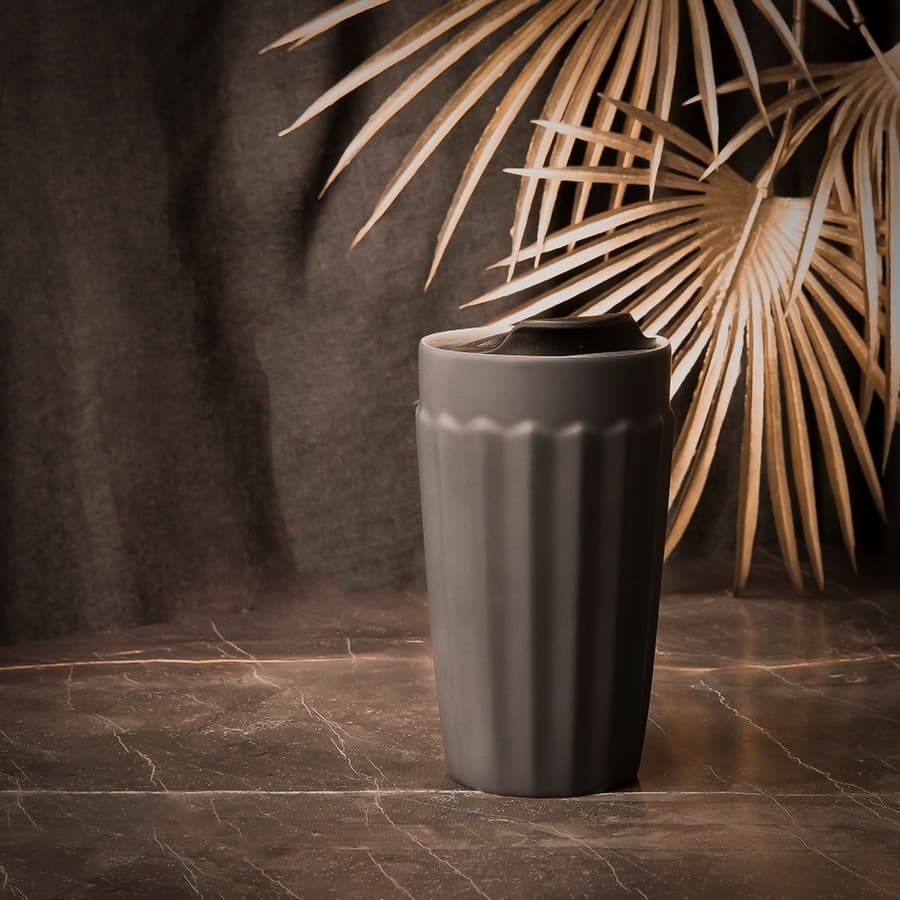 Керамический стакан с двойными стенками, имеет необычную форму с гранями
