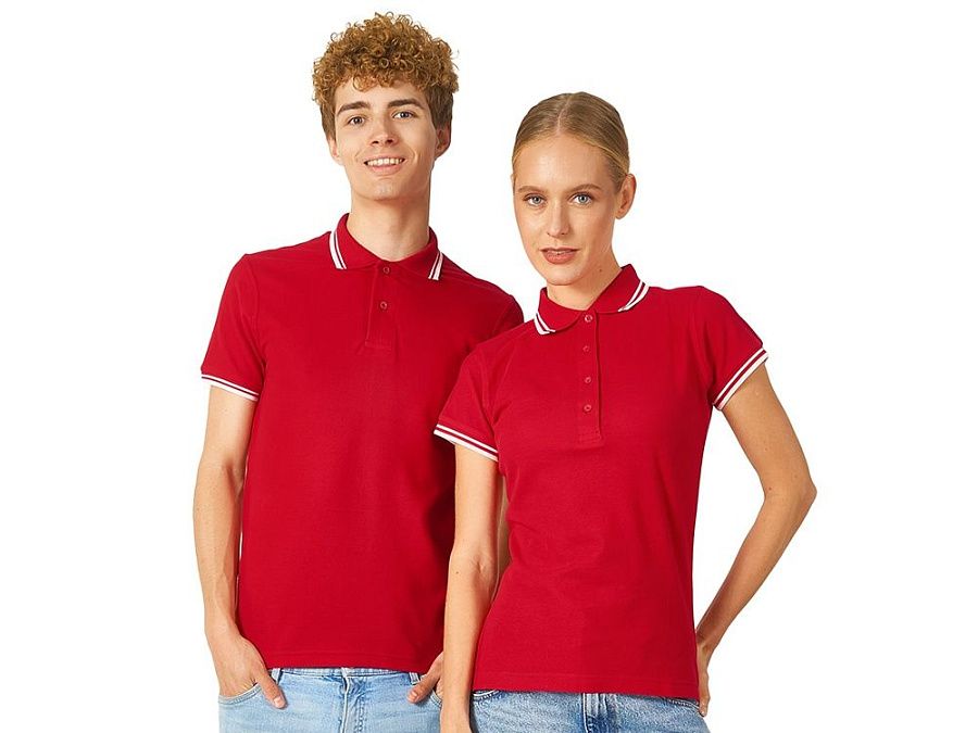 Рубашка-поло Erie с окантовкой. Воротник и манжеты резинка 1х1. Мужская модель с двумя пуговицами, женская - 4 пуговицы в тон изделия. Обшивка внутри воротника. Женская модель с разрезами по бокам. Женская модель приталена. Пике, 100% чесаный хлопок. Плотность 180 г/м2.