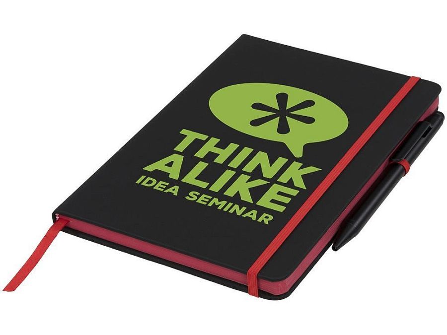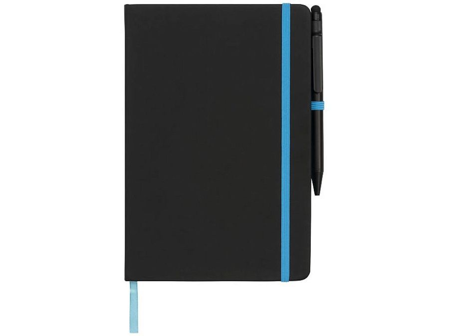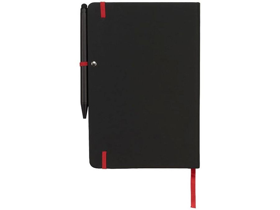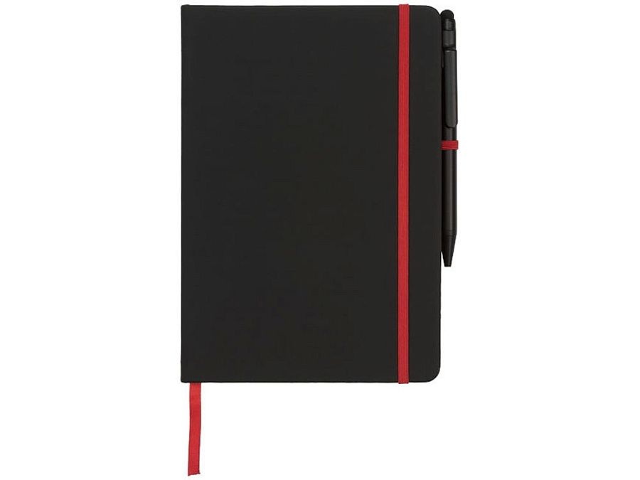 Блокнот Noir Edge среднего размера. Современный и стильный черный блокнот с мягкой на ощупь обложкой. Цветной край и цветные маркеры страниц, застежка-держатель для ручки. Предлагается с черной шариковой ручкой-стилусом. Блокнот содержит 96 листов линованной бумаги (70 г/м²) кремового цвета. ПУ.