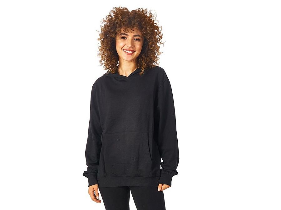 Чтобы худи дольше сохраняло форму, горловина усилена тесьмой со внутренней стороны спинки, а манжеты и низ отстрочены и отделаны рибом 2х2.