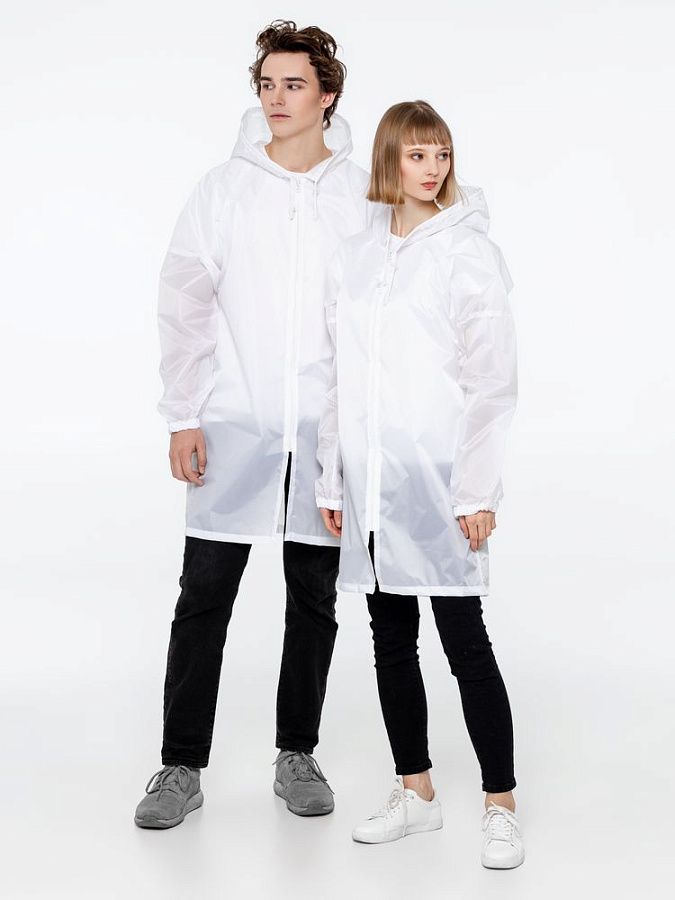 Плащ-дождевик из ткани таффета на молнии с капюшоном. Складывается в мешочек — удобно брать с собой.