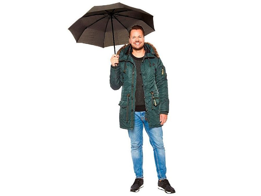 Добротный автоматический зонт с куполом из эпонжа и гибкими спицами из стекловолокна спасет от дождя и выстоит против порывов ветра. Чехол в комплекте