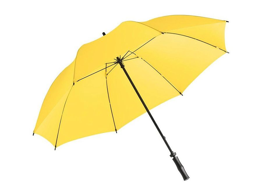 Прочный зонт-трость для гольфа с большим куполом 130 см позволит укрыться от дождя даже вдвоем. Благодаря гибким спицам из стекловолокна зонт выдержит испытание сильными порывами ветра.