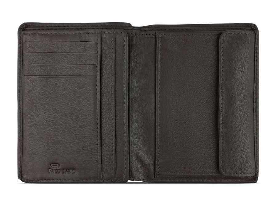 Функциональная организация: 2 отделения для банкнот, 8 слотов для карт, 6 карманов, отделение для монет, сетчатый карман, защита данных RFID.