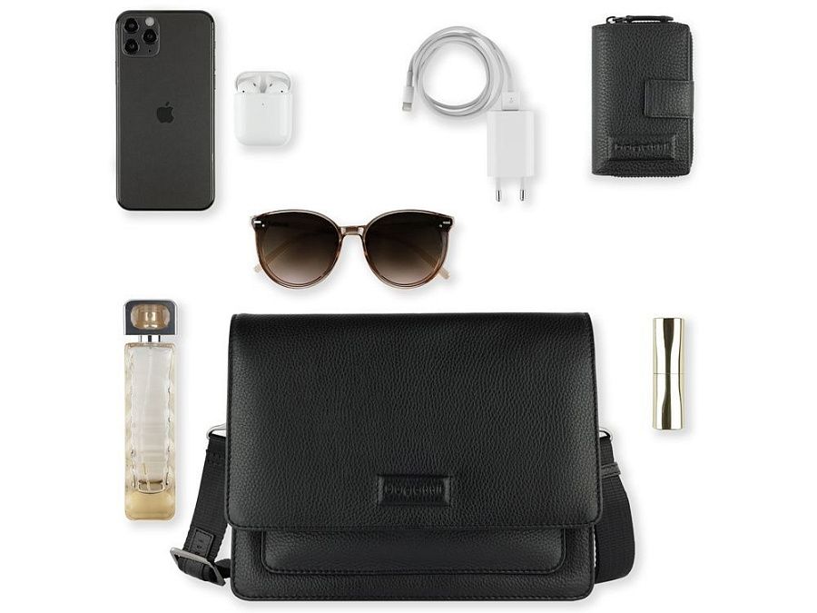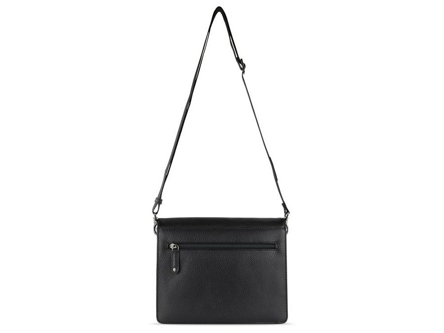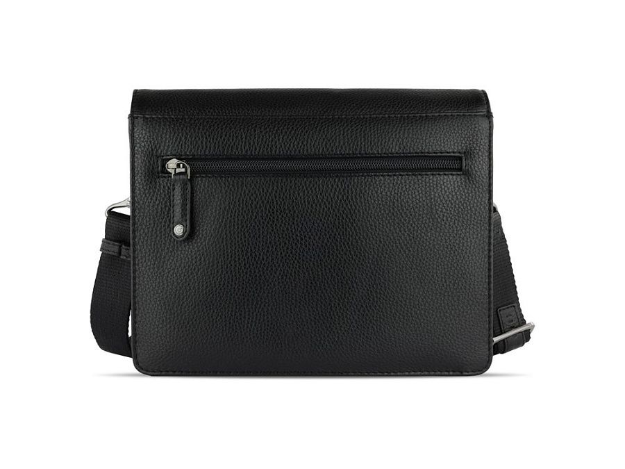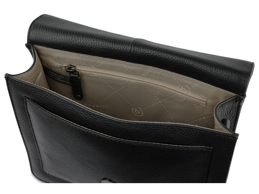Функциональная организация: основное отделение на магнитной кнопке с карманом на молнии и открытым карманом, передний открытый карман, задний карман на молнии, съемный регулируемый плечевой ремень (до 130 см).