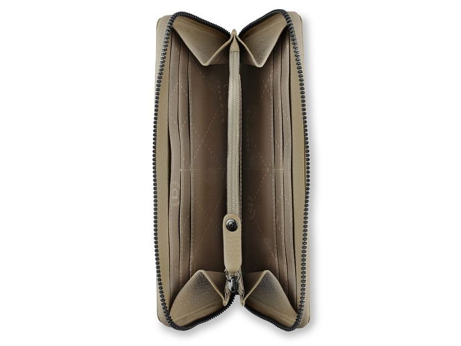 Функциональная организация: основное отделение на молнии, 8 слотов для карт, 2 кармана, 2 отделения для купюр, отделение для монет на молнии, задний карман на молнии, ремешок на запястье, защита данных RFID.