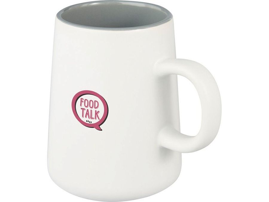 Керамическая кружка Joe с удобной круглой ручкой матовая снаружи и глянцевая внутри. Объем 450 мл. Можно мыть в посудомоечной машине независимо от методов нанесения печати. В подарочной коробке из переработанного картона.