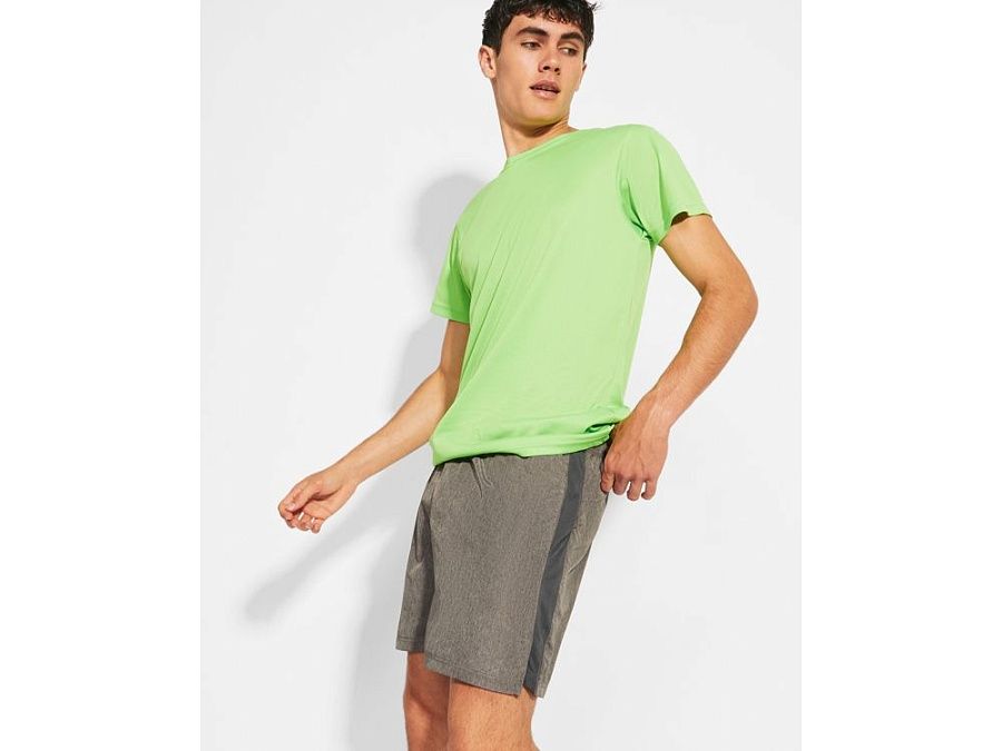 Спортивные шорты из двух видов полотен с подкладкой - трусами. Эластичный пояс с контрастным внутренним шнурком. Лампасы по бокам из дышащей ткани. Два карманы по бокам. Асимметричные боковые разрезы внизу.