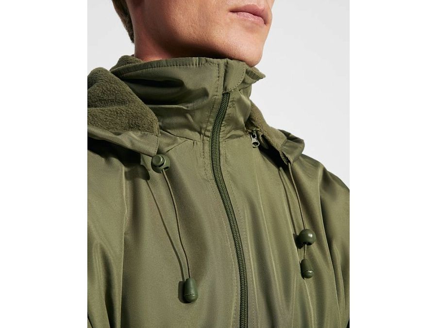 · Высокий воротник и складывающимся капюшоном с регуляторами.