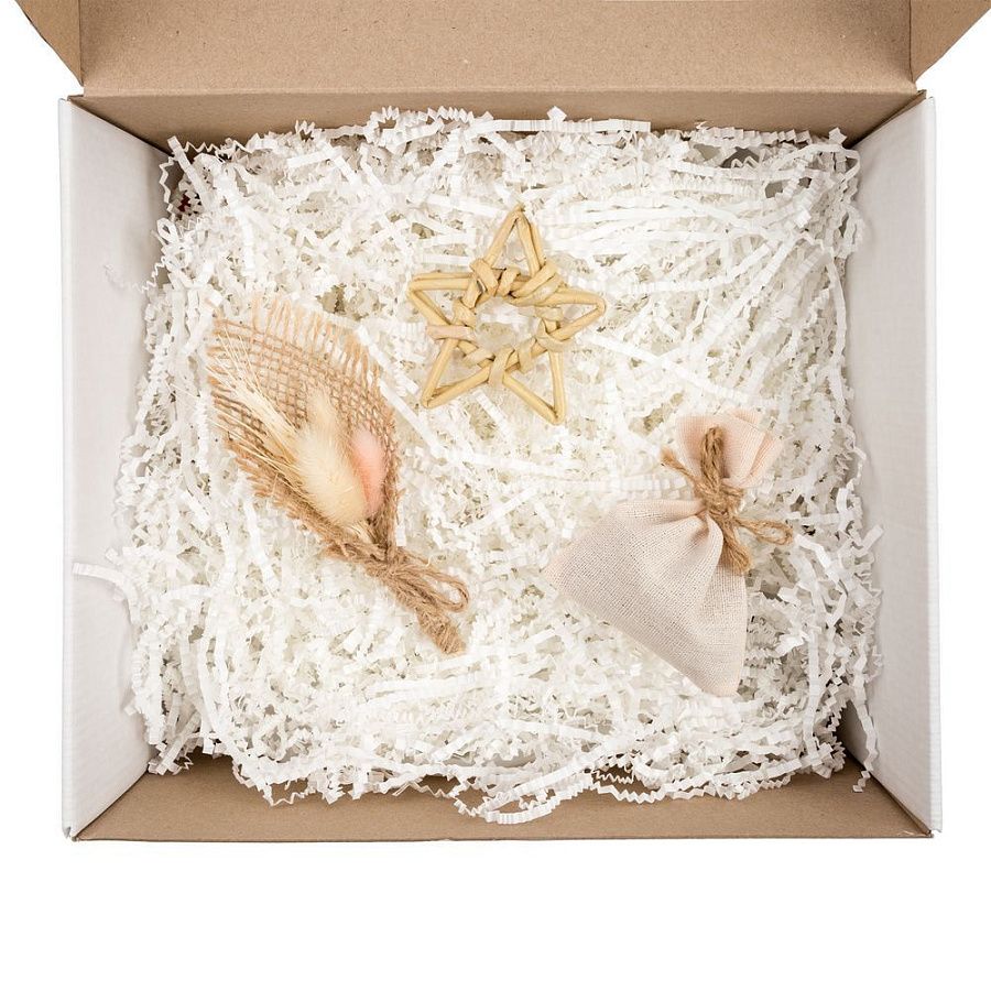 Коробка с наполнителем, шубером, открыткой и милыми украшениями Adorno — готовое решение для упаковки личного и корпоративного подарка.