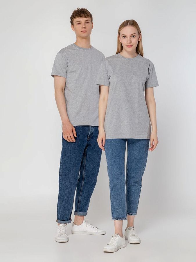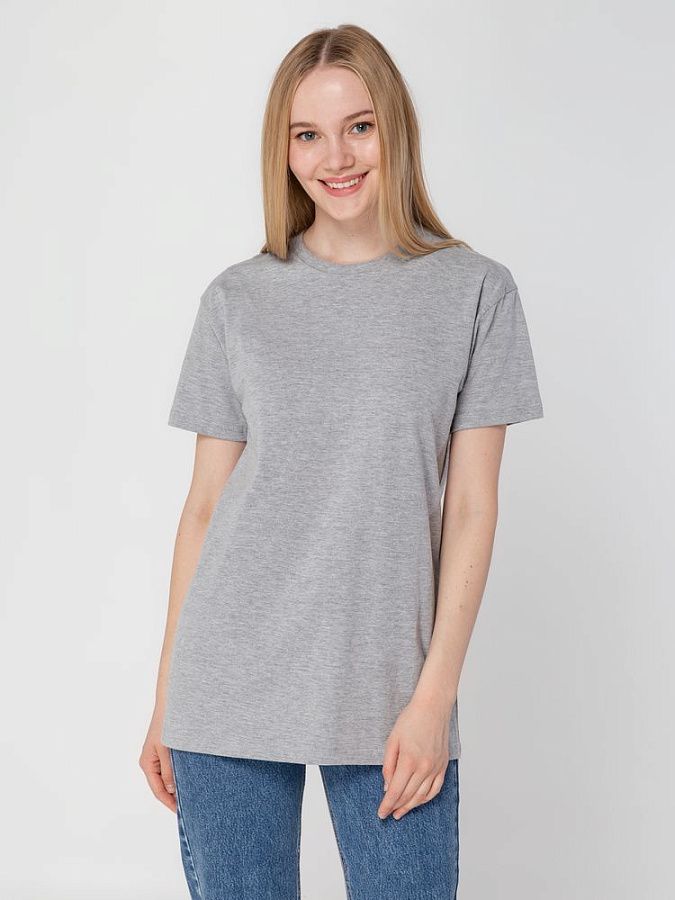 Базовая футболка унисекс прямого силуэта без боковых швов (размеры XS–4XL) или с боковыми швами (размеры 5XL–6XL).