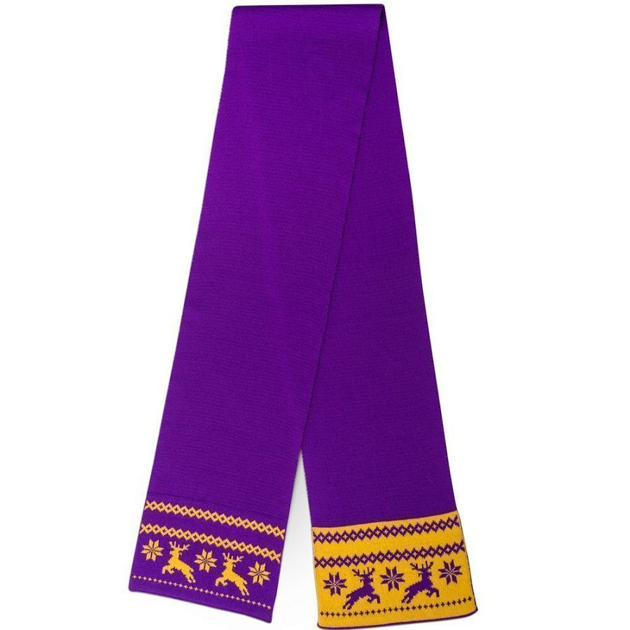 Шарф с вывязанным логотипом и индивидуальным рисунком в фирменной цветовой гамме.
