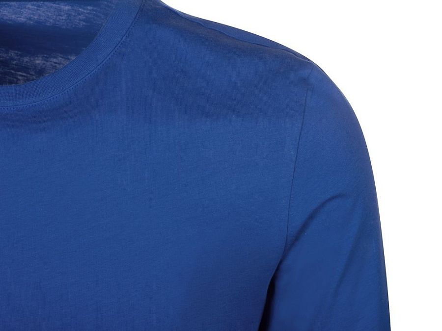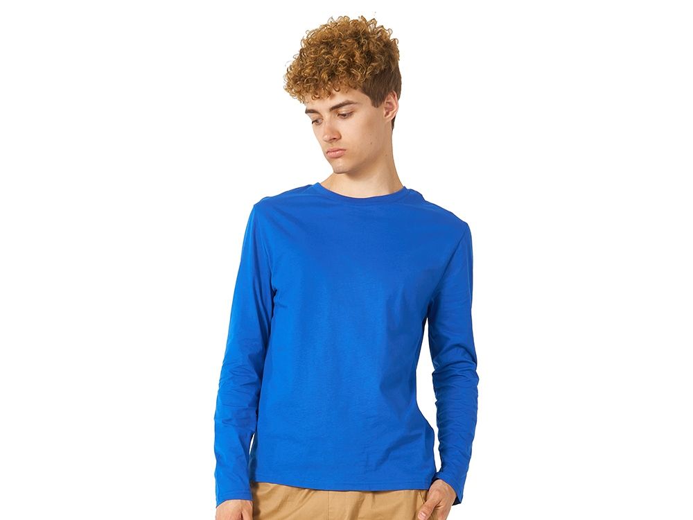 Футболка с длинным рукавом комфортной посадки с боковыми швами. Горловина обработана рибом 1х1 и тесьмой по спинке. Футболка выполнена из хлопкового джерси.