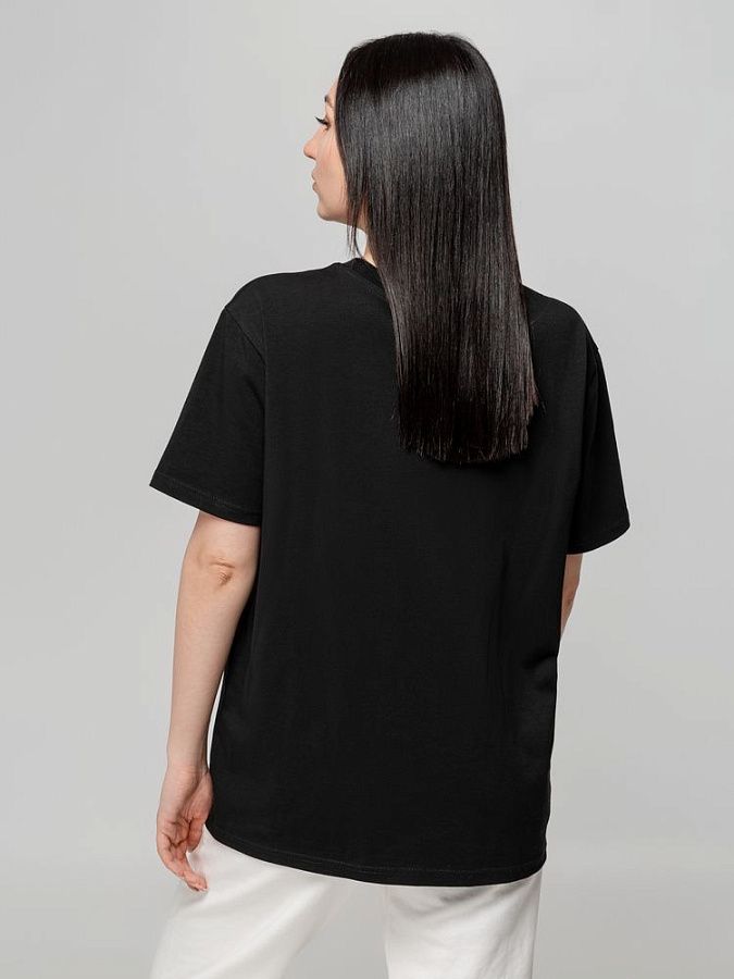 Футболка унисекс свободного кроя с боковыми швами. Благодаря тонким и длинным волокнам хлопка ткань футболки отличается гладкостью, ровностью и прочностью, отлично сохраняет форму, не деформируется и не выцветает при стирке.