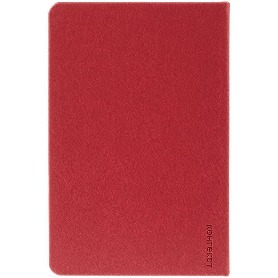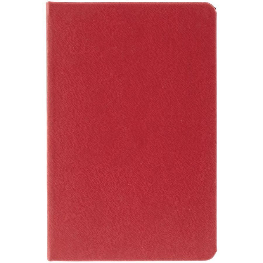 Ежедневник с твердой обложкой, выполнен из материала Latte, красный РР, дополнен ляссе в цвет обложки.