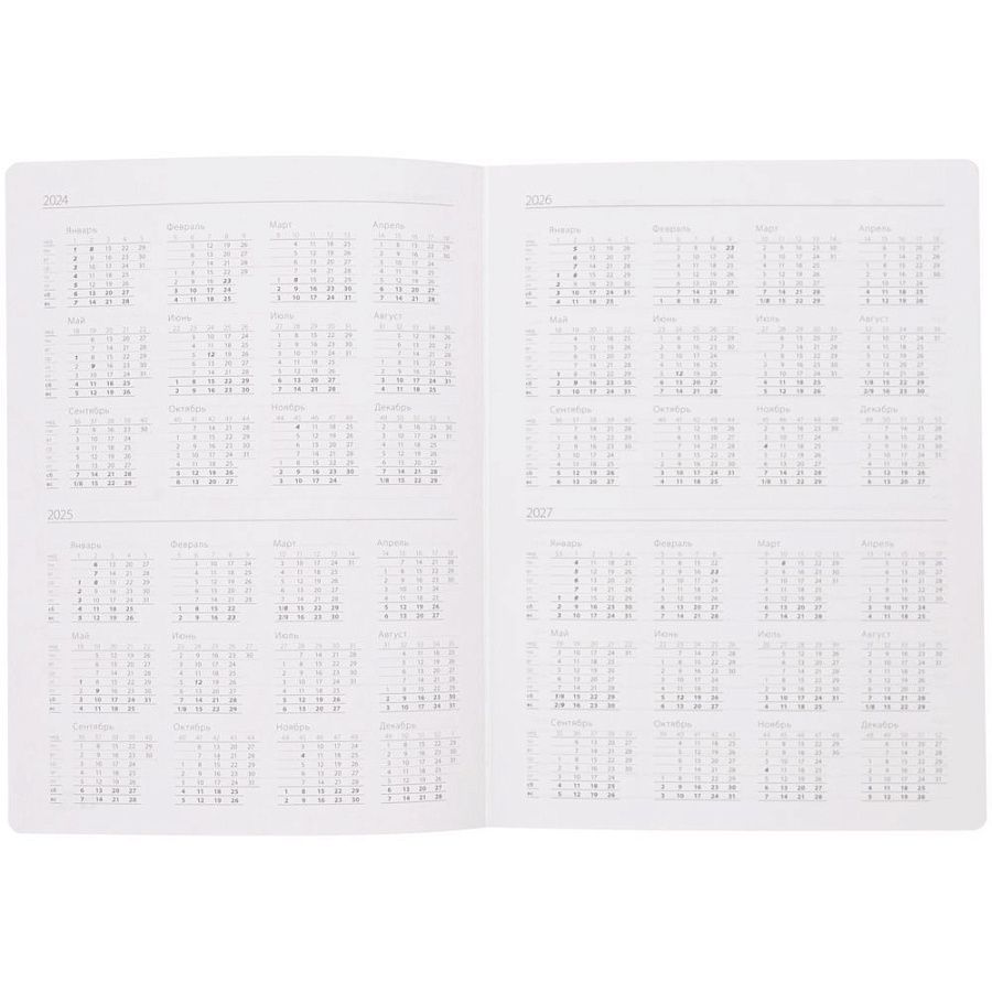 Гибкая обложка выполнена из материала Velour Melange, серый СС и Latte, красный PP (внутренняя часть обложки). Внутри корешка — специальное место для крепления ручки размером до 15х0,9 см.