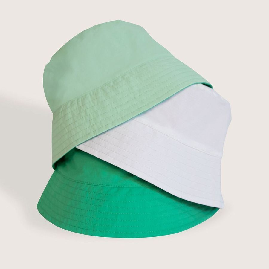 Двухсторонняя панама из переработанного нейлона с плетением рипстоп. Два цвета в одной панаме позволяют менять свой образ под настроение прямо в течение дня.