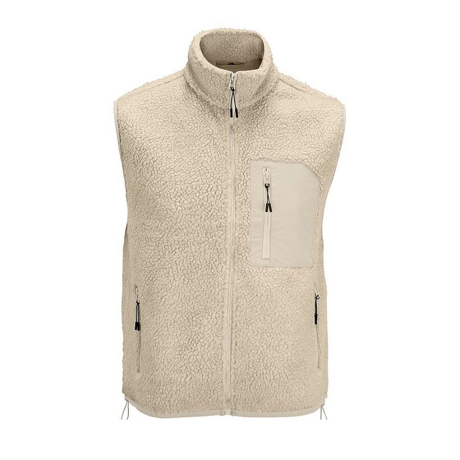 Жилет унисекс из фактурной искусственной шерпы с гладкой отделкой из таслана.