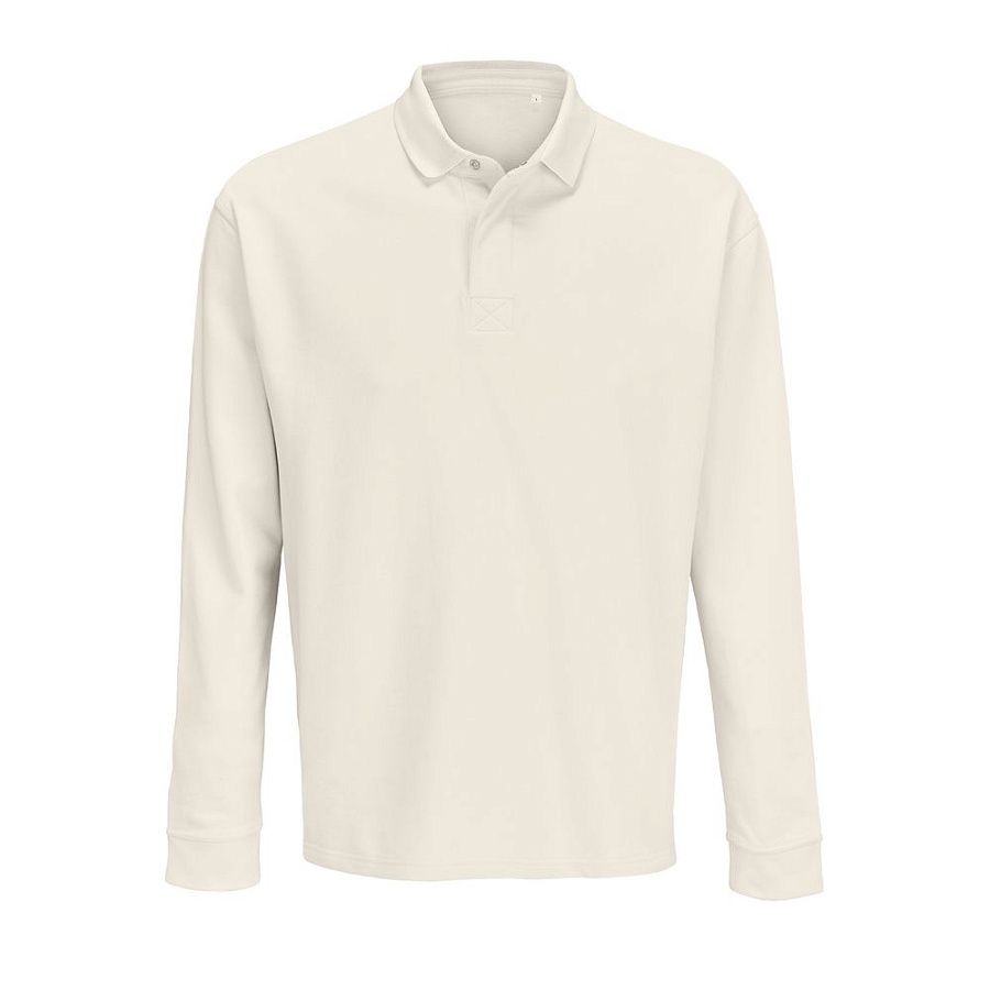 Рубашка поло из футера с длинным рукавом и спущенным плечом.