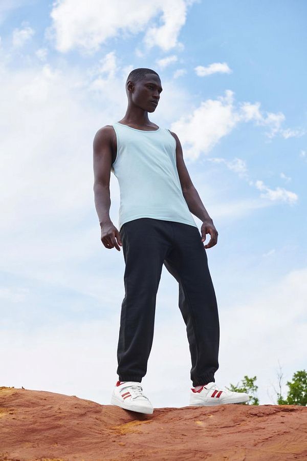 Удобная свободная посадка с глубокими проймами. Горловина и проймы обработаны бейкой. С боковыми швами.