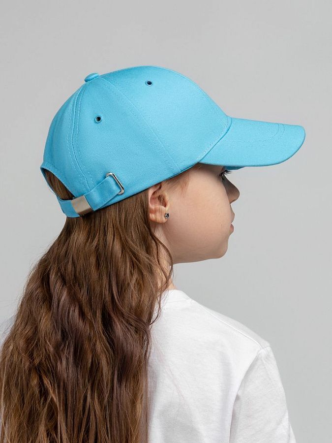 Детская модель с шестью клиньями без шва на лбу. Металлические люверсы покрашены в тон изделия. Сзади металлическая застежка для регулировки размера.