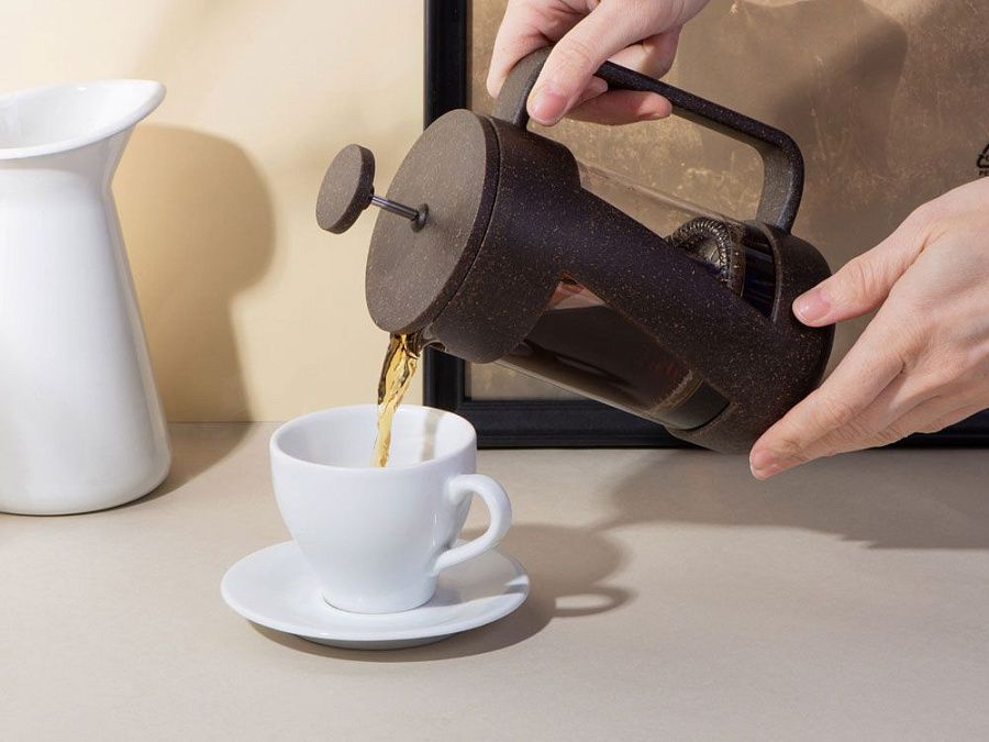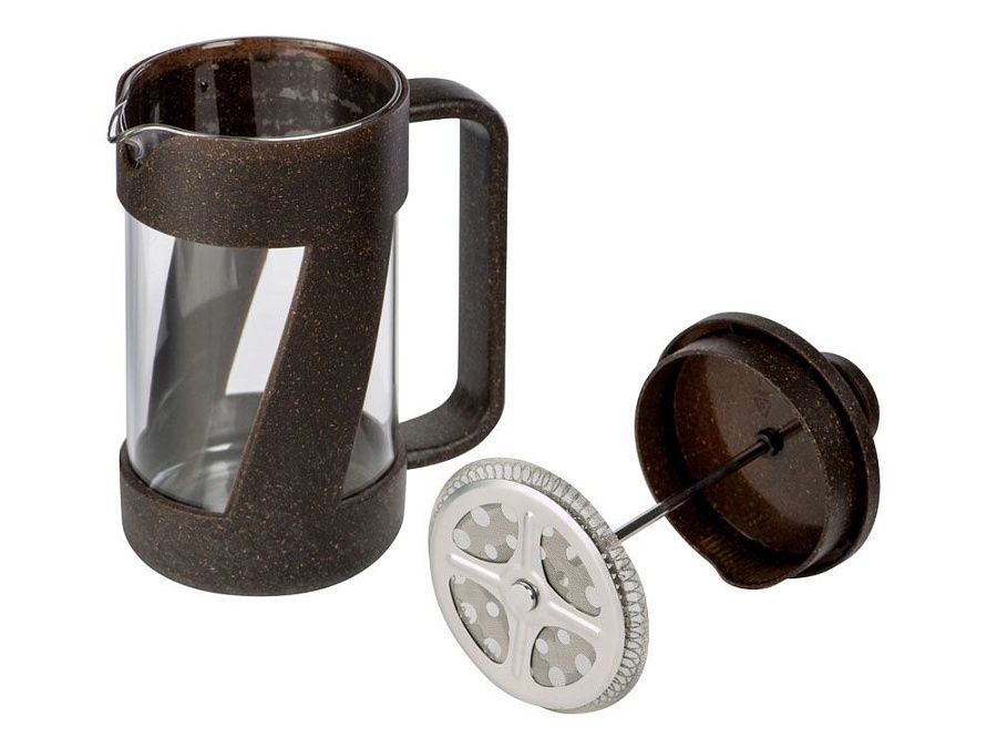 Оплетающая стеклянную колбу часть выполнена из переработанных кофейных зерен, смешанных с пластиком и древесными волокнами.